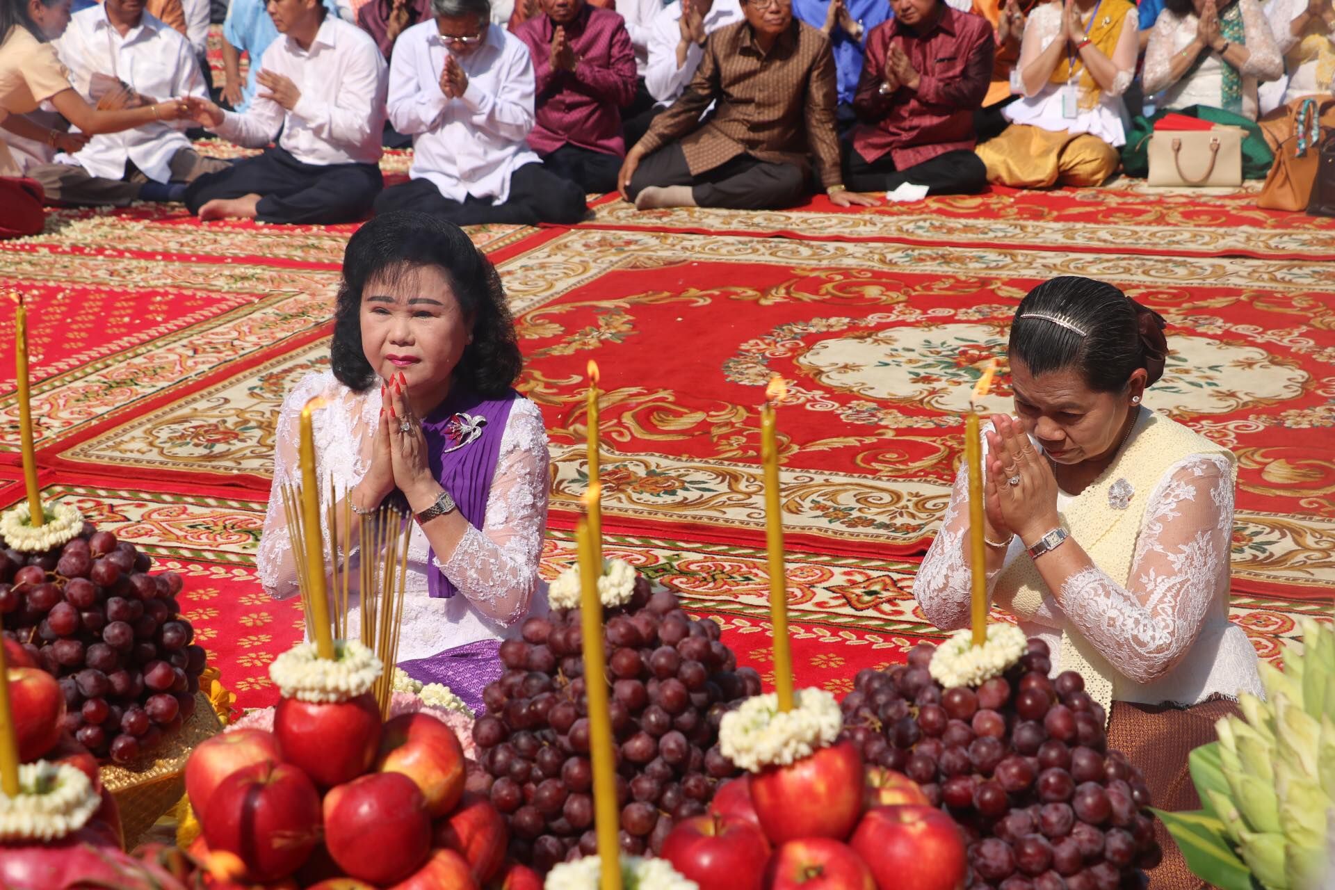 សម្តេចកិតិ្តព្រឹទ្ធបណ្ឌិត ប៊ុន រ៉ានី ហ៊ុនសែន ព្រះសង្ឃ មន្ត្រីនៃរាជរដ្ឋាភិបាល សមាជិកសមាជិកាសហភាពសហព័ន្ធយុវជនកម្ពុជា ប្រជាពលរដ្ឋ បាននិមន្ត និងអញ្ជើញចូលរួមក្នុងពិធីទទួល និងអំណរសាទរទេវតាឆ្នាំថ្មី ឆ្នាំច