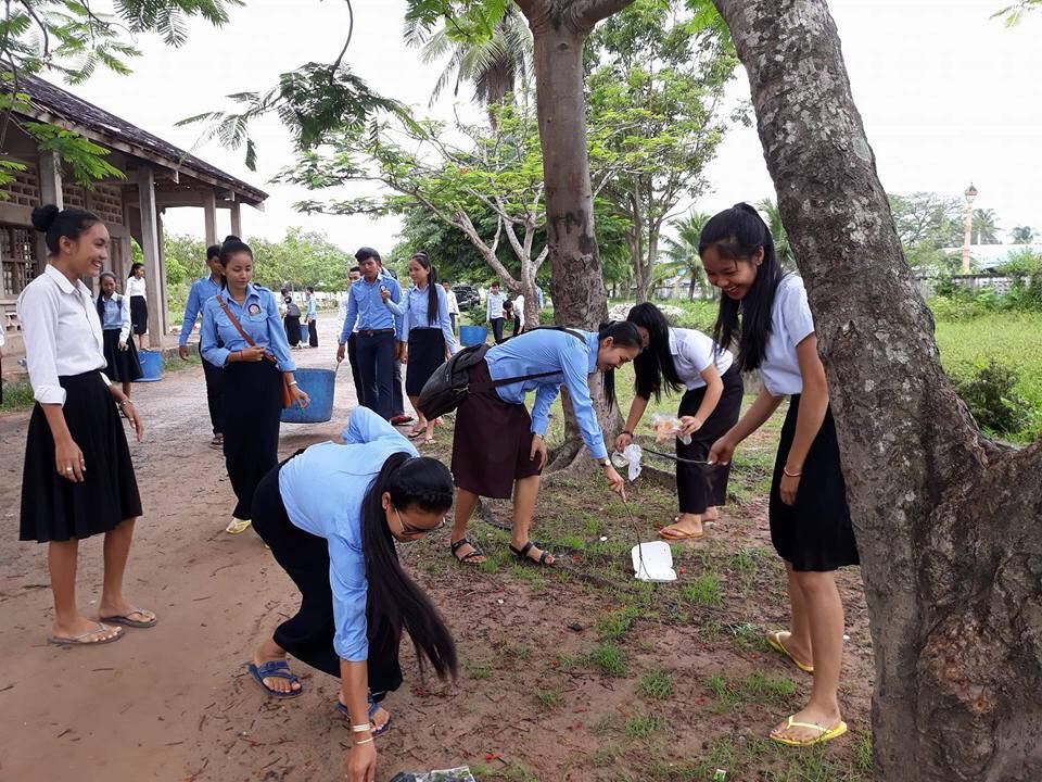 សមាជិកសមាជិកាសហភាពសហព័ន្ធយុវជនកម្ពុជា អង្គតាសោម បានចូលរួមសម្អាតបរិស្ថាននៅមុខ និងក្នុងបរិវេណ វិទ្យាល័យ សម្ដេចអគ្គមហាសេនាបតីតេជោ ហ៊ុន សែន អង្គតាសោម