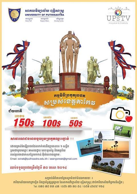កម្មវិធីប្រកួតរូបថត "សម្រស់ខេត្តតាកែវ"Takeo Beauty Contest! Just send the photos and become the winner with our contest.Join us now! For more information, please contact: svireak@puthisastra.edu.khThanks for your support!