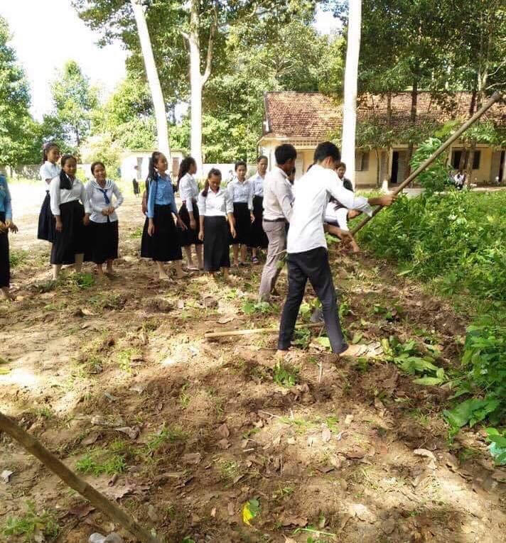 ស.ស.យ.ក. វិទ្យាល័យ សុខអាន លាយបូរ ស្រុកត្រាំកក់ បានដឹកនាំសិស្សានុសិស្ស កាប់ដីដេីម្បីពង្រីកផ្លូវឲ្យមានសោភ័ណភាពស្អាត