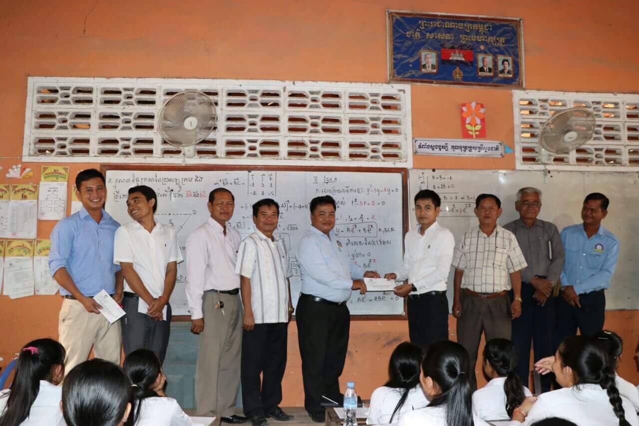 ជាមួយគ្នានោះប្រតិភូក៏បានអំណរគុណយ៉ាងជ្រាលជ្រៅដល់លោកគ្រូអ្នកគ្រូបង្រៀនបំប៉នស្ម័គ្រចិត្តដែលបានលះបង់ពេលវេលាបង្រៀនប្អូនៗដើម្បីឱ្យកាន់តែមានទំនុកចិត្តក្នុងការប្រឡង និងបានប្រគល់ថវិកាឧបត្ថម្ភរបស់ ឯកឧត្តម សុខ ពុទ្ធិវុធ ប្រធានសហភាពសហព័ន្ធយុវជនកម្ពុជាខេត្តតាកែវ ជូនដល់ដល់លោកគ្រូ អ្នកគ្រូស្ម័គ្រចិត្តបង្រៀនបំប៉នសិស្សថ្នាក់ទី១២ ត្រៀមប្រឡងសញ្ញាបត្រមធ្យមសិក្សាទុតិយភូមិ នៅវិទ្យាល័យក្រាំងស្លា និងវិទ្យាល័យហេង សំរិនព្រៃល្វា។