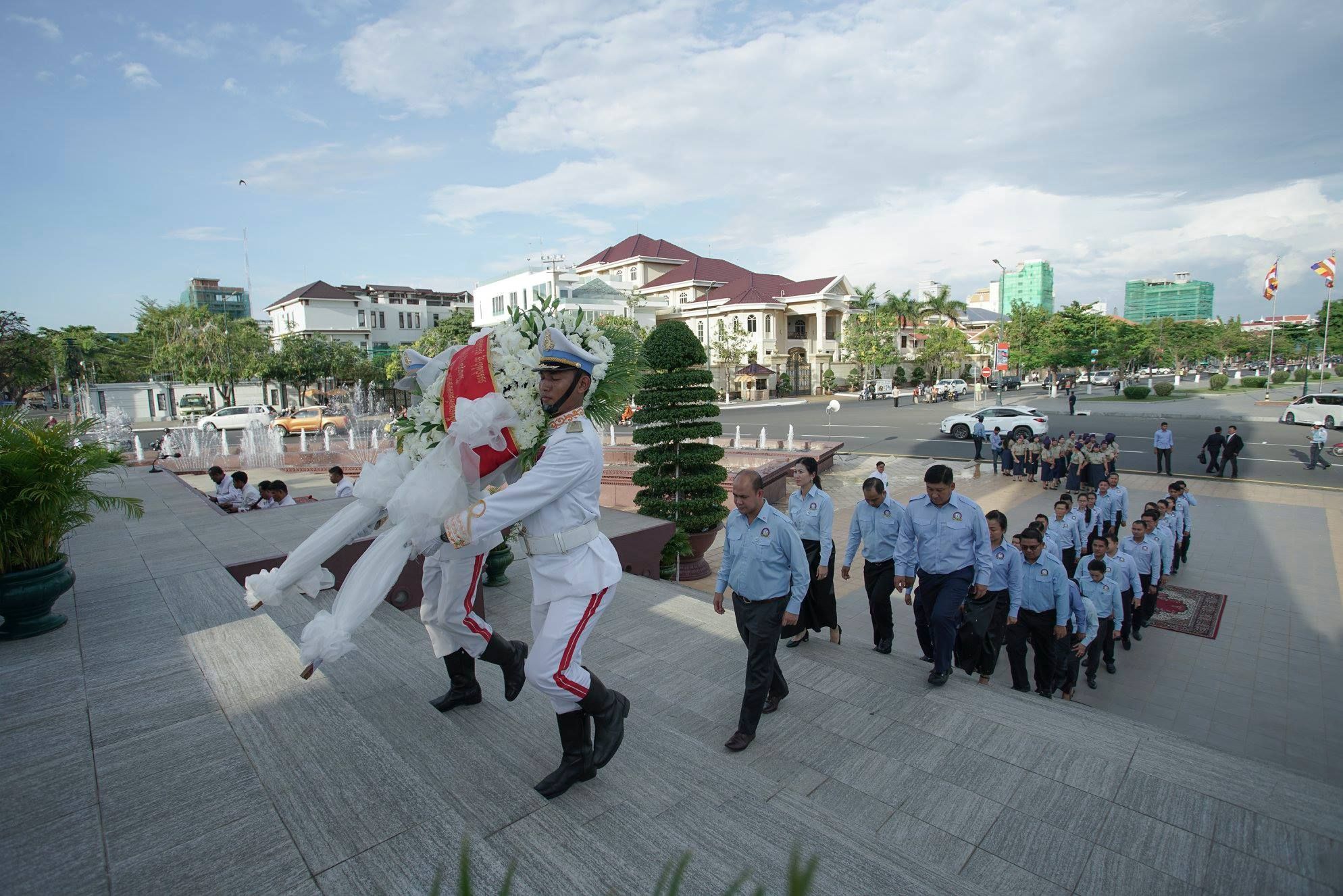 ឯកឧត្តម ហ៊ុន ម៉ានី ដឹកនាំគណៈប្រតិភូសហភាពសហព័ន្ធយុវជនកម្ពុជា ដាក់កម្រងផ្កាគោរពវិញ្ញាណក្ខន្ធ នៅវិមានឯករាជ្យ និងថ្វាយកម្រងផ្កា ព្រះបរមរូប«ព្រះបរមរតនកោដ្ឋ»