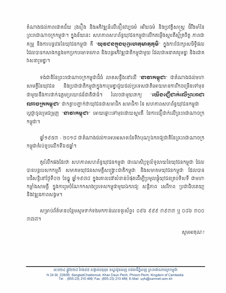 ព័ត៌មានលម្អិត៖ http://www.uyfc.org/11/2018/1686/