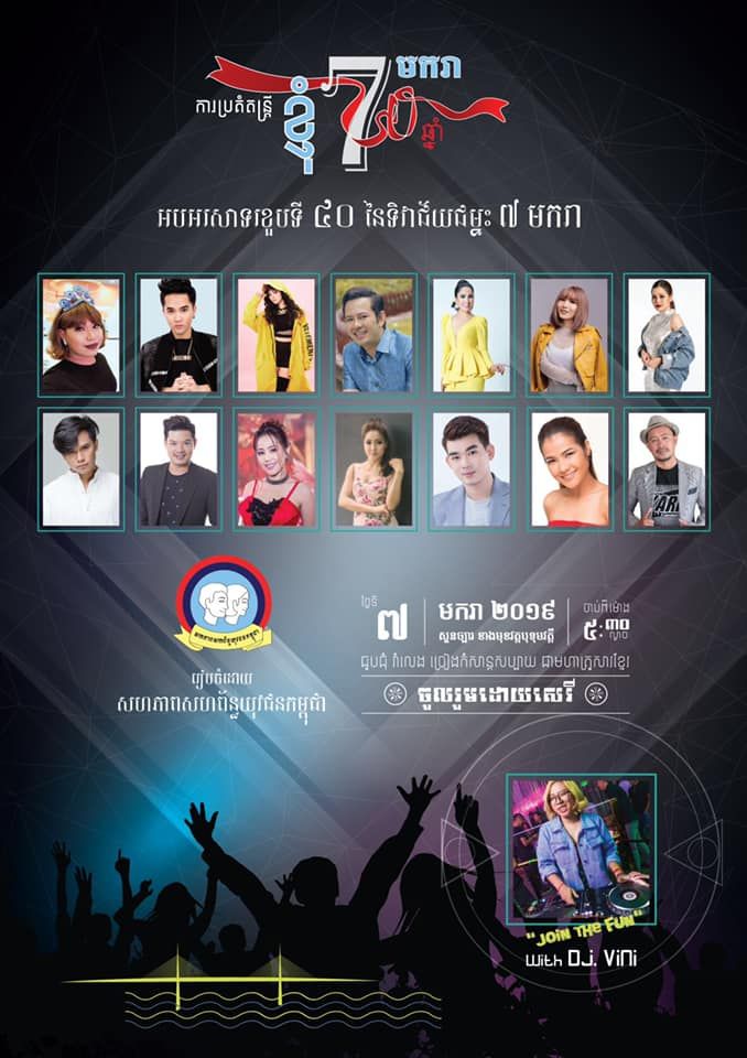 សូមគោរពអញ្ជើញបងប្អូន ពុកម៉ែ មាមីង បងប្រុស បងស្រី សមាជិកា សមាជិកា ប្អូនៗ ក្មួយៗ ចូលរួមរីករាយកំសាន្តជាមួយការប្រគំតន្រ្តី យុវជន ៧មករា ខ្ញុំ៤០ឆ្នាំ