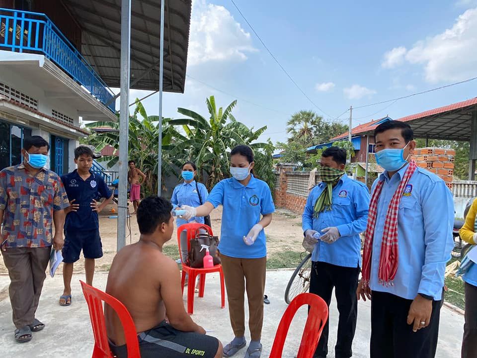 សកម្មភាពសហភាពសហព័ន្ធយុវជនកម្ពុជា ស្រុកទ្រាំង ខេត្តតាកែវ បន្តចូលរួមជាមួយលោកមេឃុំ ក្រុមប្រឹក្សាឃុំ មន្ទីរពេទ្យបង្អែកស្រុក មេភូមិ ប្រជាការពារ ក្នុងការចុះផ្សព្វផ្សាយពីវិធាននានាក្នុងការបង្ការ និងទប់ស្កាត់ការឆ្លងរាលដាលវីរុសកូវីដ១៩(Covid-19) និងចុះពិនិត្យសុខភាពបងប្អូនប្រជាពលរដ្ឋដែលទេីបអញ្ជេីញមកពីប្រទេសថៃ នៅភូមិពោន ស្រុកទ្រាំង ខេត្តតាកែវ និងជាលទ្ធផលបញ្ជាក់ថាពួកគាត់សុទ្ធតែមានសុខភាពល្អ ប៉ុន្តែក្រុមការងារបានណែនាំ និងស្នេីគាត់ដាក់ខ្លួននៅដាច់ដោយឡែកចំនួន១៤ថ្ងៃ ដេីម្បីប្រយុទ្ធប្រឆាំងការរីករាលដាលនៃវីរុស (Covid-19) ជាមួយរាជរដ្ឋាភិបាល និងដេីម្បីបង្ការកុំឲ្យមានការឆ្លងក្នុងសហគមន៍ ។