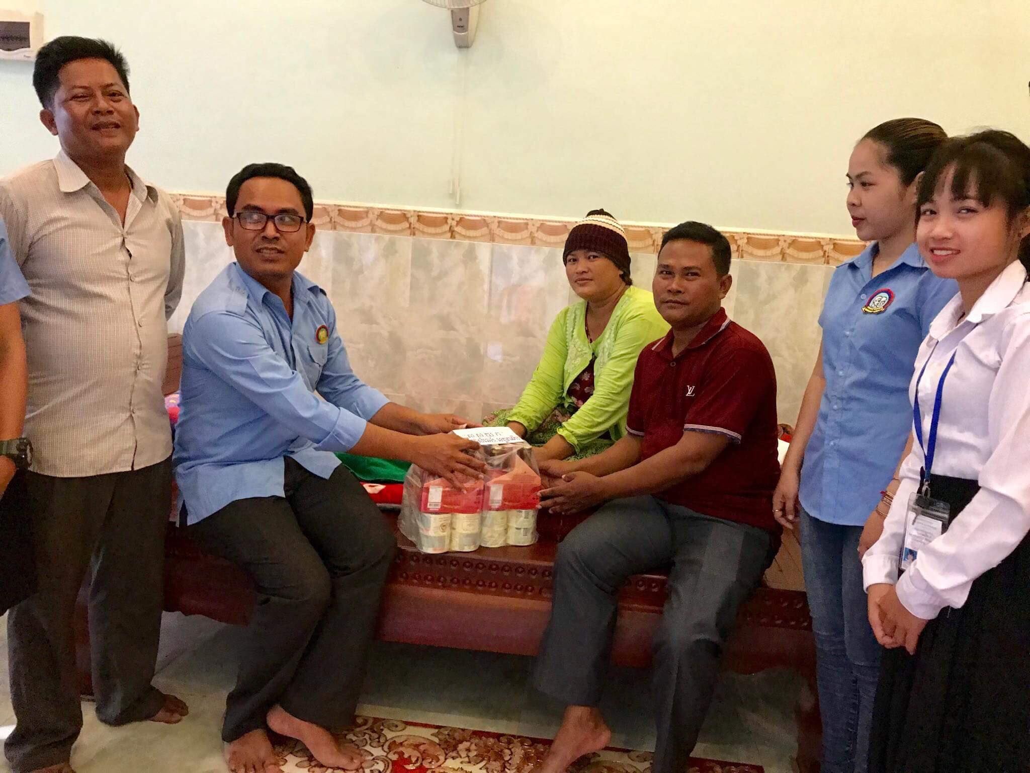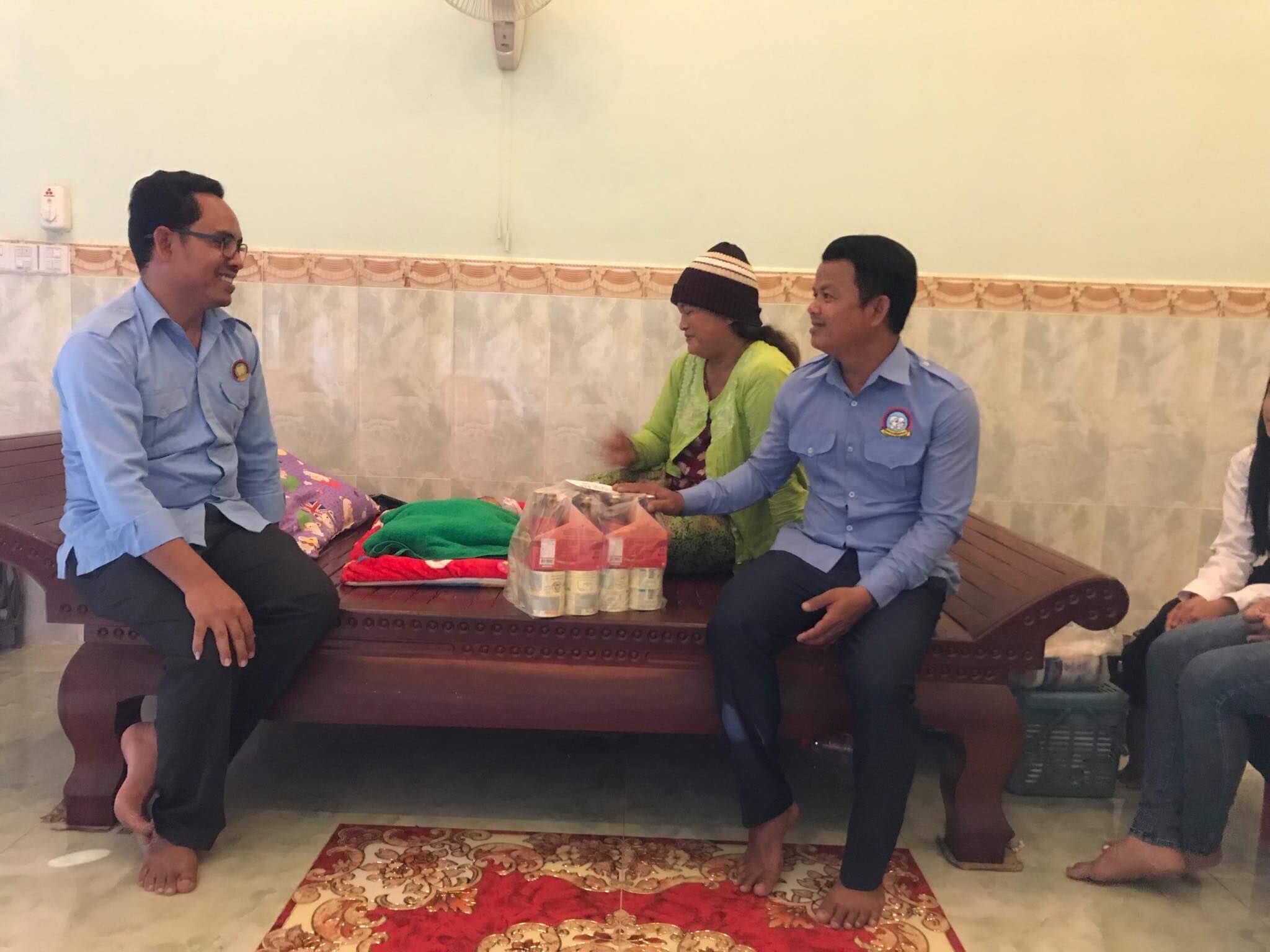 ក្រុមគ្រួសារ ស.ស.យ.ក. ស្រុកសំរោង ខេត្តតាកែវ បានចុះសួរសុខទុក្ខ ព្រមទាំងនាំយកសម្ភារប្រើប្រាស់ និងថវិកាមួយចំនួនរបស់ ឯកឧត្តម សុខ ពុទ្ធិវុធ ប្រធានសហភាពសហព័ន្ធយុវជនកម្ពុជា ខេត្តតាកែវ ជូនដល់ លោក អាំ ញ៉