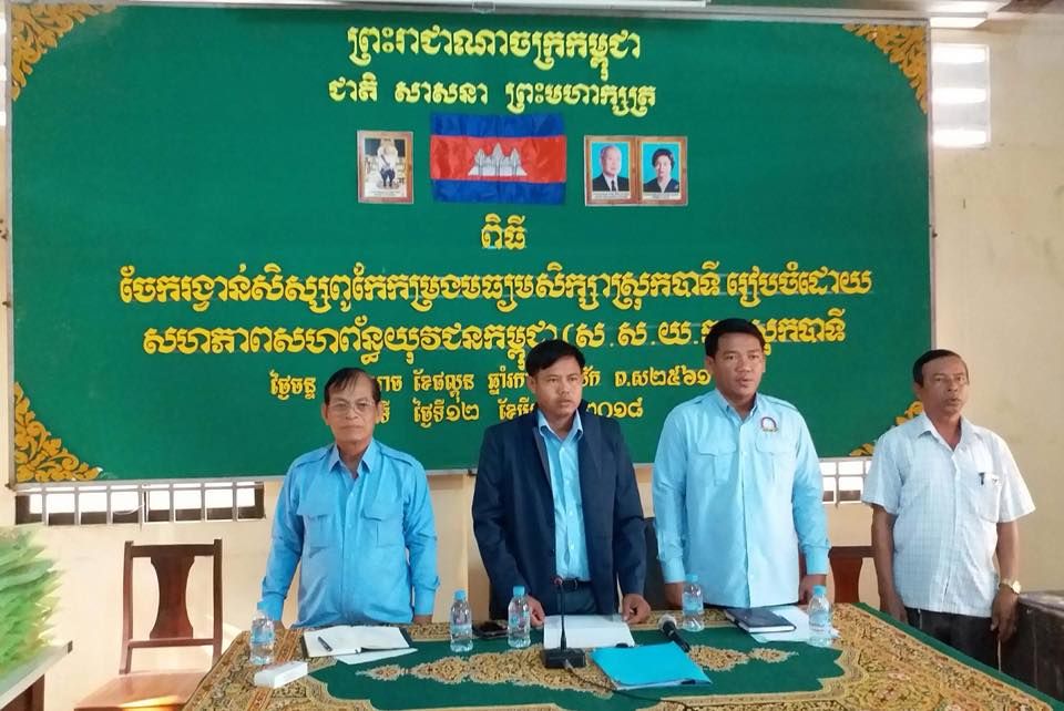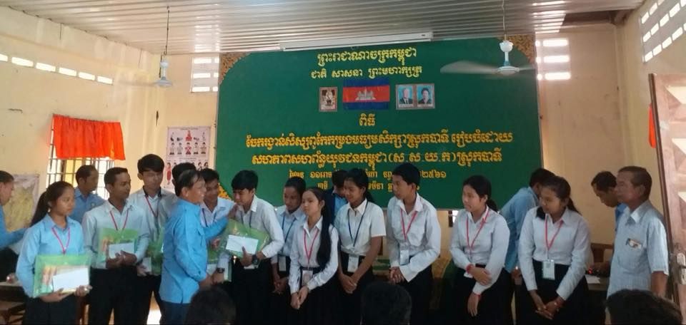 សហភាពសហព័ន្ធយុវជនកម្ពុជា ស្រុកបាទី បានរៀបចំពិធីចែករង្វាន់សិស្សពូកែកម្រងមធ្យមសិក្សា ជូនប្អូនៗជាសិស្សពូកែចំនួន ៦០នាក់ ។