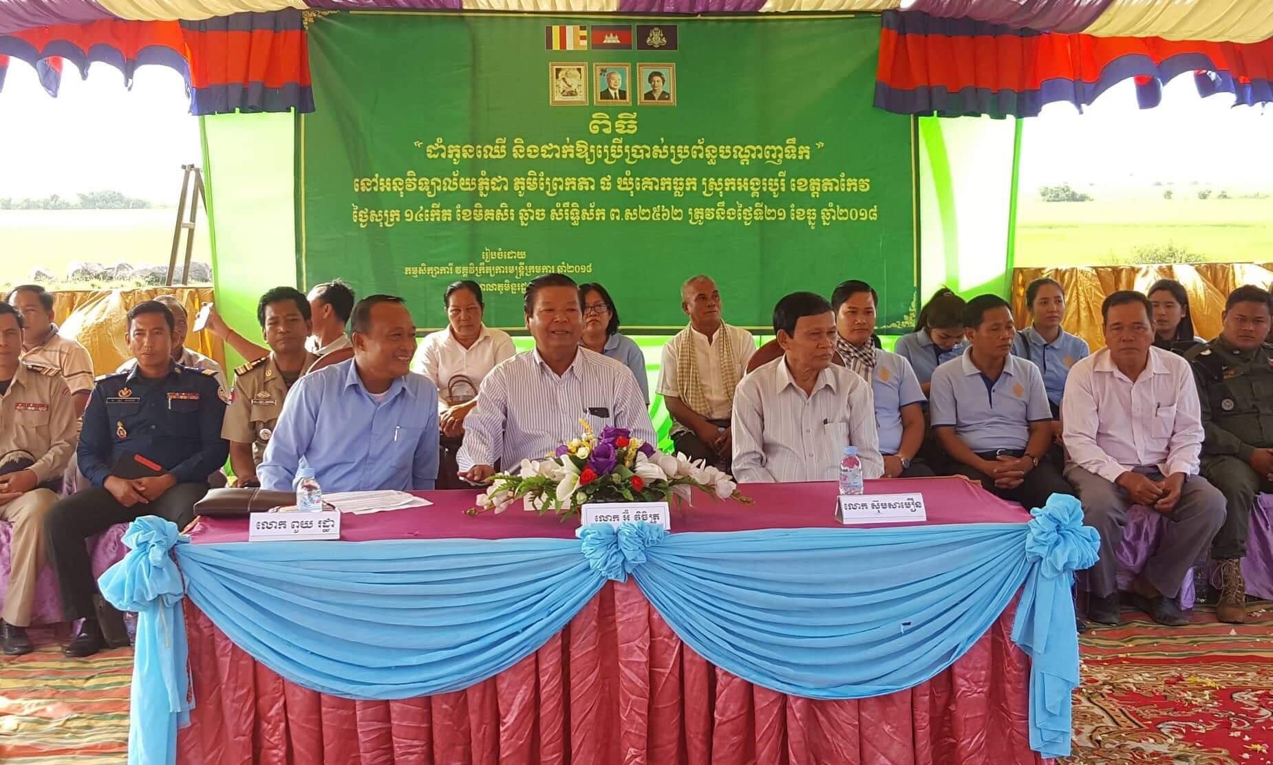 សមាជិកសមាជិកា ស.ស.យ.ក. ស្រុកអង្គរបូរី បានចូលរួមក្នុងពិធីដាំកូនឈើ និងតប្រព័ន្ធបណ្តាញទឹក នៅអនុវិទ្យាល័យ ភ្នំដា ស្ថិតនៅភូមិព្រែកតា ផ ឃុំគោកធ្លុក ស្រុកអង្គរបូរី ខេត្តតាកែវ ដែលពិធីនេះរៀបចំដោយកម្មសិក្សាការីវិក្រឹត្យកាមន្ត្រីក្រមការភ្នំពេញវេនព្រឹក នៃសាលាភូមិន្ទ រដ្ឋបាល ស្ថិតក្រោមអធិបតីភាពលោក អ៊ុំ វិចិត្រ សាស្ត្រាចារ្យនៃសាលាភូមិន្ទរដ្ឋបាល តំណាងឲ្យឯកឧត្តម យស់ ប៊ុនណា អនុរដ្ឋលេខាធិការក្រសួងមុខងារសាធារណៈ និងជានាយកសាលាភូមិន្ទរដ្ឋបាល លោក ពួយ រដ្ឋា អភិបាលរងស្រុកអង្គរបូរី តំណាងលោក ឌឺម គឹមសាន អភិបាលស្រុកអង្គរបូរី និងលោក ស៊ុម សាមឿន សមាជិកក្រុមប្រឹក្សាស្រុក តំណាងលោក ហ៊ុន យ៉ុង ប្រធានក្រុមប្រឹក្សាស្រុកអង្គរបូរី ផងដែរ។